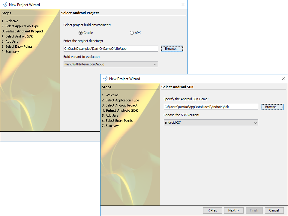 ウィザードは、お使いの環境に基づいて Android SDK Home を決定し、このプロジェクトに構成されている SDK バージョンを選択します。