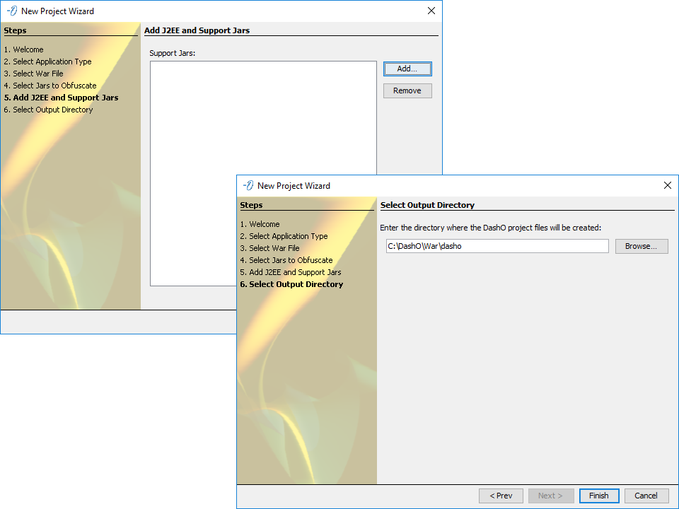 PreEmptive Protection - DashO プロジェクトを作成するための最も簡単な方法は、New Project Wizard を使用することです。 ウィザードは、アプリケーションを調べて、そのアプリケーションを保護するための適切な設定を決定します。 ウィザードを起動するには、[File]>[Project Wizard]メニューを選択します。