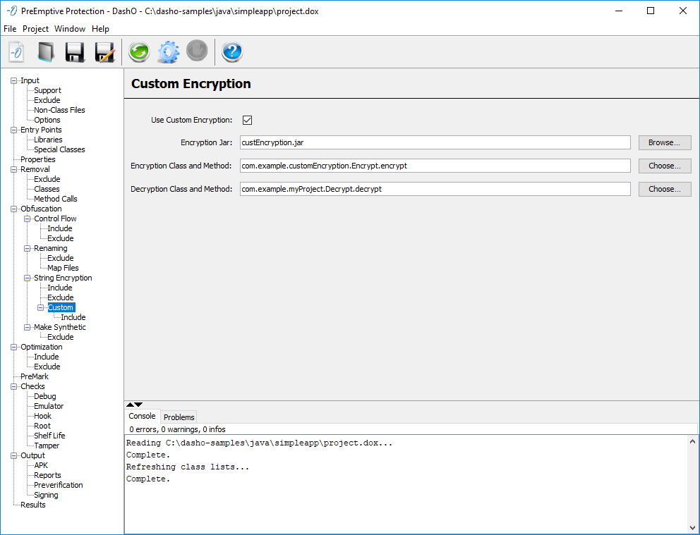 jar ファイルには、暗号化のクラスとメソッドが含まれています。この jar ファイルはプロジェクトの外部にあります。難読化時、文字列を暗号化するために使用されます。