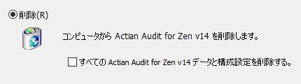 Audit for Zen は、Windows のコントロール パネルから通常の方法で削除できます。Actian Audit for Zen v14 として一覧に表示されます。