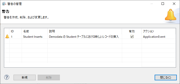 •[有効]チェック ボックスをオンにすると、警告がアクティブ化されます。チェック ボックスをオフにした場合は、警告が非アクティブ化され、クエリに一致する監査レコードがあっても警告がトリガーされなくなります。このため、クエリ結果では監査レコードに対してベル アイコンが表示されなくなると共に、Windows イベント ログにエントリが書き込まれなくなります。