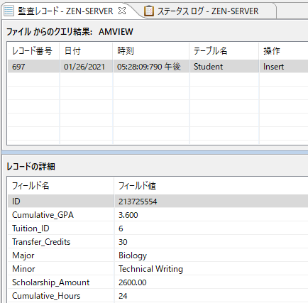 1 [監査レコード]タブまたは[ステータス ログ]タブを選択します。[監査レコード]タブの場合は、必要に応じて現在のビュー ファイルを更新してクエリを再実行します。