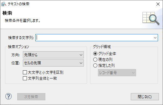 •すべての列を検索するには、[グリッド全体]を選択します。
