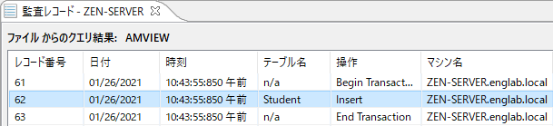 現在のビュー ファイルまたはアーカイブ ファイルに対してクエリを実行した場合、[監査レコード]タブにそのクエリ結果が表示されます。