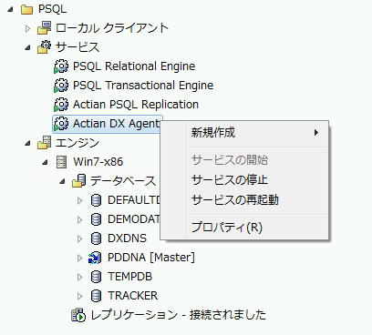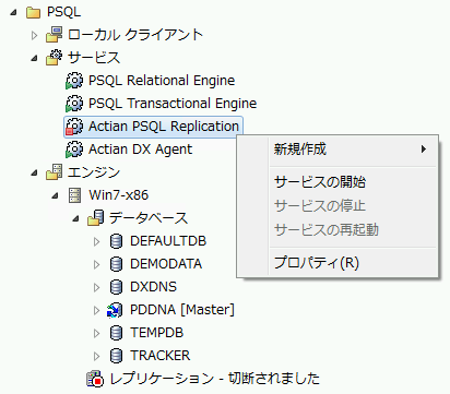 3 PSQL Replication を右クリックし、[サービスの停止]を選択します。