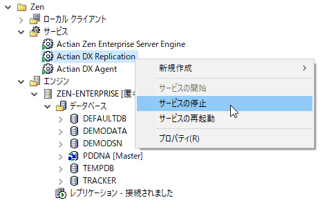 3 Actian DX Replication を右クリックし、[
