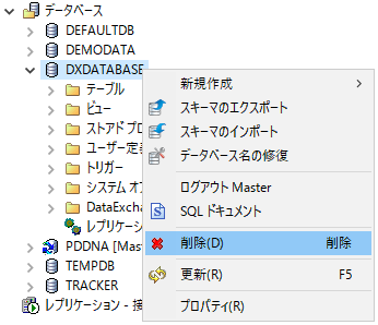 DXDatabase はデータベースとして一覧に加えられています。