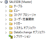 5 Zen エクスプローラーで[エンジン]の下にある SalesDB ブランチを展開します。SalesDB がデータベースとして一覧に表示され、そのレプリケーション ノードに、データベースがアクティブであることを示す A という文字が表示されていることに注目してください。