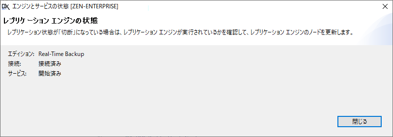1 Control Center(ZenCC)で[レプリケーション-接続されました]ノードを右クリックし、[エンジンとサービスの状態の表示]を選択します。