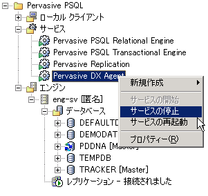 3 Pervasive DX Agen を右クリックし、[サービスの停止]を選択します。