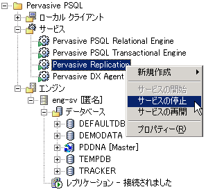 3 Pervasive Replication を右クリックし、[サービスの停止]を選択します。