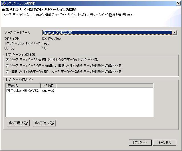 a. ソース データベースと選択したサイトの間でデータをレプリケートする