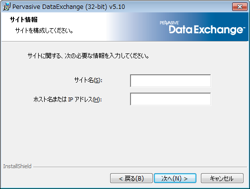 メモ: Pervasive DataExchange のインストール中に、Pervasive PSQL データベース エンジンは自動的に停止/再起動されます。業務上、一定時間はデータベース エンジンを停止できないような環境である場合は、停止が許可される時間内に DataExchange をインストールしてください。