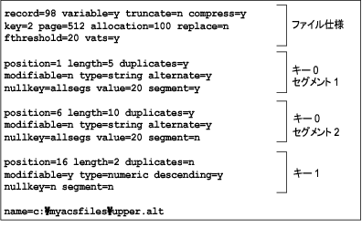•定義したファイルおよびキー仕様に基づいた新規データ ファイルの作成