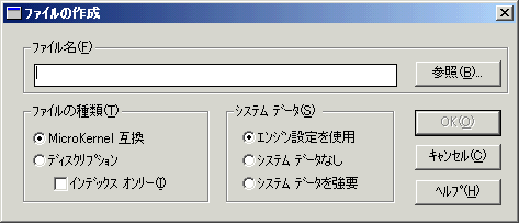 ファイルの作成 | ダイアログ ボックスの現在の情報に基づいて新規ファイルを作成します。 |