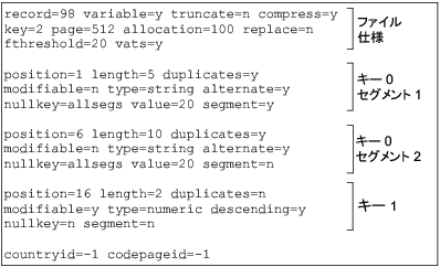 キー数 | key=nnn | 0 - 119 | データ オンリー ファイルを作成する場合は、0 を指定します。 キー カウントがゼロの場合、[データのインクルード]および[システム データの使用]は "no" に設定することはできません。 |