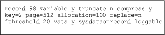 可変長部割り当てテーブル(VAT) | huge=<y|n> # vats=<y|n> | 適用外 | 可変長レコードのあるファイルのみに適用できます。 |