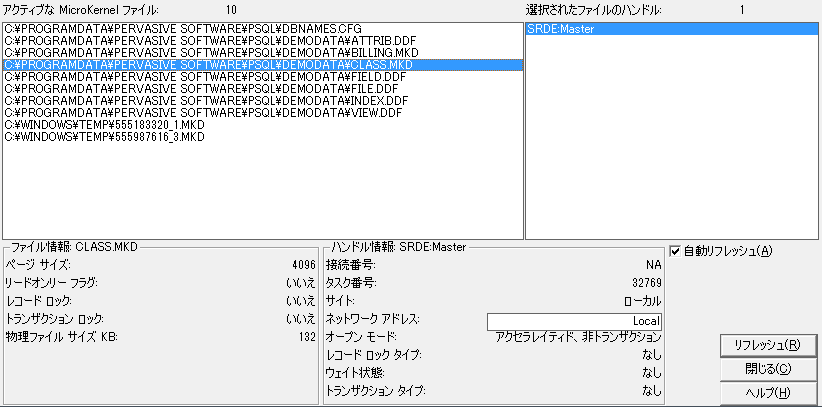 ファイル数 | MicroKernel によって現在開かれているファイル数。 |