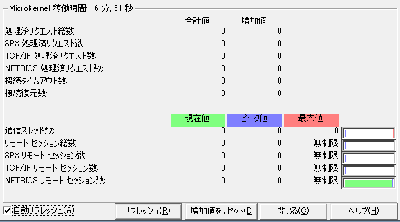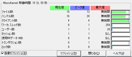 MicroKernel 稼働時間 | MicroKernel が起動されている時間が、週、日、時、分、秒で示されます。 |