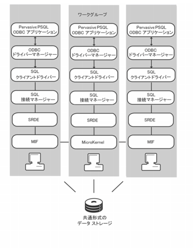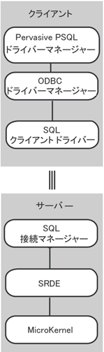 •SQL Relational Database エンジン(SRDE)。これは Pervasive PSQL アプリケーションをサポートする ODBC/SQL API を提供します。