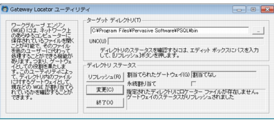 このユーティリティを使用すれば、特定のディレクトリにあるデータ ファイルのゲートウェイとして使うワークグループ エンジンをユーザーが指定したり変更することができます。Gateway Locator ユーティリティは、Pervasive PSQL v11 SP3 ワークグループ エンジンでのみ使用することができます。