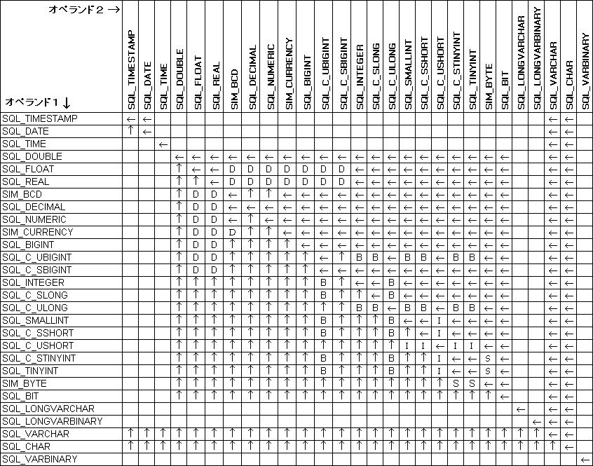 | これらの型は COALESCE 関数で直接使用できます。結果はオペランド 2 の型になります。 |