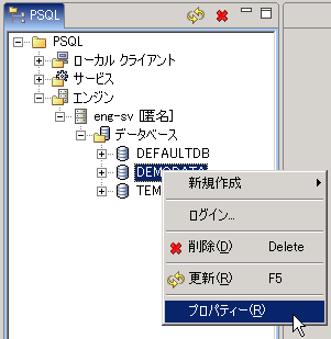 表 8 PSQL エクスプローラーにおけるオブジェクトの右クリック タスク
