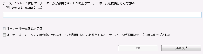 [スキーマのエクスポート]ダイアログ