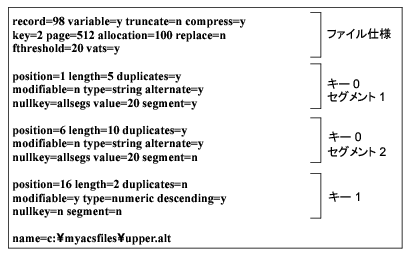 •定義したファイルおよびキー仕様に基づいた新規データ ファイルの作成