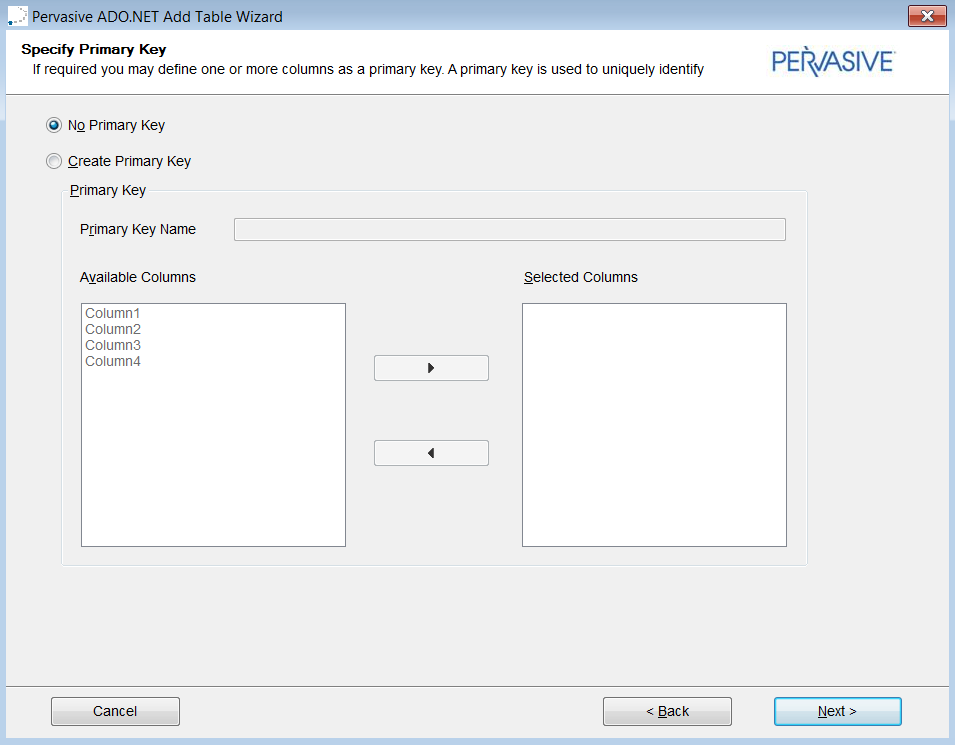 Next]をクリックします。[Specify Primary Key]ダイアログが表示されます。