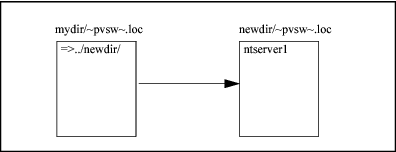 newdir でデフォルト名(~PVSW~.LOC)を持つ別のロケーター ファイルを探すように指示しています。今度は、このロケーター ファイルが