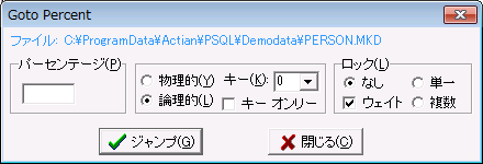 [GetExt]メニュー | 以下の Btrieve オペレーションが実行できます。 •Goto Percent •Get Position •Find Percent | |