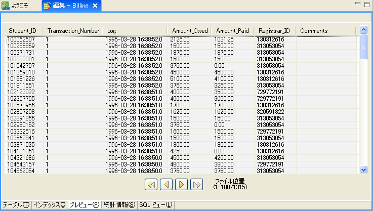 [プレビュー]ページでは、現在のテーブル定義を使用して書式設定されたファイルのデータを見ることができます。テーブル定義を変更すると、それに応じてこのプレビューも変わります。