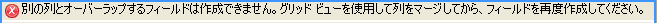 DDFBLDR-4:SQL 列がほかの列にオーバーラップしています。列のサイズを切り詰めました。 | テーブル内のほかの列と重複している SQL 列が既存のテーブル定義にあります。 |