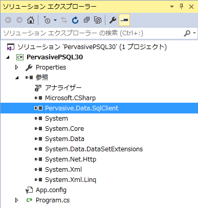 4 それを選択し、[OK]をクリックします。これで、ソリューション エクスプローラーに PSQL データ プロバイダーが含まれるようになります。