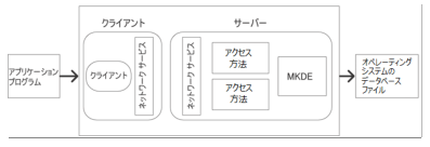 下図は、オペレーティング システムでのアプリケーション プログラムからデータベース ファイルへのフローを示しています。データベース エンジンはアプリケーション プログラムとデータ ファイルの間に存在します。