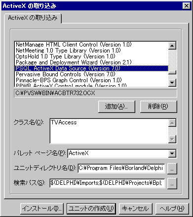 Visual Basic と Delphi への ActiveX アクセス方法のインポート