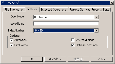 3 VAccess1 プロパティ ページ ダイアログ ボックスの[Settings]タブをクリックし、IndexNumber フィールドをクリックします。選択したテーブルに定義されているインデックスのリストが表示されます。