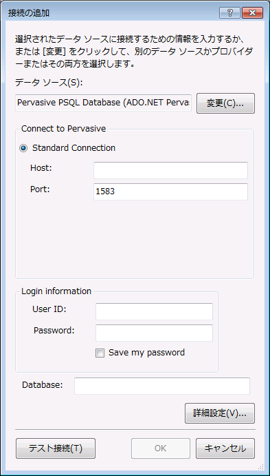 a. [データ ソース]リスト ボックスで "Pervasive Zen Database" を選択します。