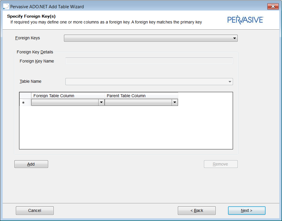 Next]をクリックします。[Specify Foreign Key(s)]ダイアログが表示されます。