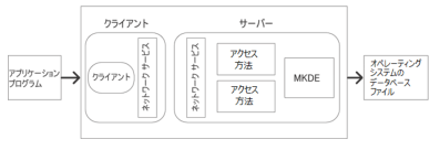下図は、オペレーティング システムでのアプリケーション プログラムからデータベース ファイルへのフローを示しています。データベース エンジンはアプリケーション プログラムとデータ ファイルの間に存在します。