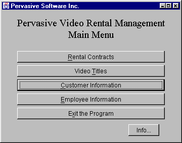 Zen ビデオ店サンプル アプリケーションの Java ソース ファイルは、.jar ファイルに格納されています。これらのファイルを抽出して、Btrieve テーブルに接続する Zen Java インターフェイスの実例を得ることができます。