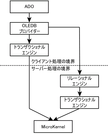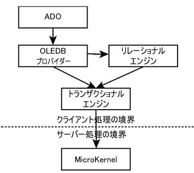 この 2 番目のバージョンのプロバイダーには、欠点がいくつかありました。リレーショナル エンジンがこのプロバイダーにカプセル化されるために、クライアント ベースと見なされていました。このため、プロバイダーは行ごとにクライアント プロセスとサーバー プロセスの境界を越える必要があり、クライアント/サーバー設定のアプリケーションではパフォーマンスの問題を引き起こしていました。