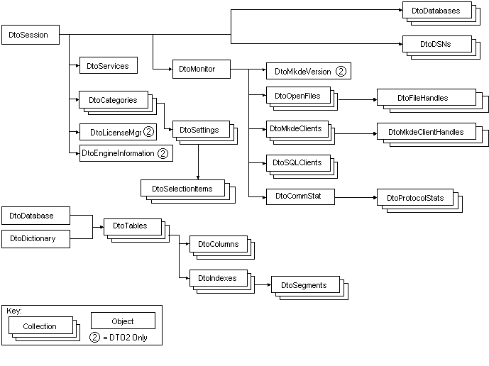 DtoMonitor オブジェクトとその従属オブジェクトによって、サーバーの監視機能および診断情報を提供します。また、DtoEngineInformation オブジェクトを使って DtoSession からエンジン情報を直接取得することもできます。