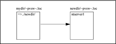 4 に示したロケーター ファイルの例を使用すると、左側のリダイレクト ロケーター ファイルはデータベース エンジンに 1 つ上のディレクトリに行き、そのサブディレクトリの newdir でデフォルト名(~PVSW~.LOC)を持つ別のロケーター ファイルを探すように指示しています。今度は、このロケーター ファイルが ntserver1 という名前のコンピューター上にあるワークグループ エンジンがゲートウェイ エンジンであることを指定します。その結果、mydir ディレクトリにあるデータ ファイルにアクセスするために、ntserver1 にあるデータベース エンジンが使用されます。