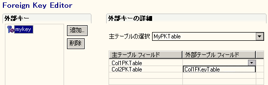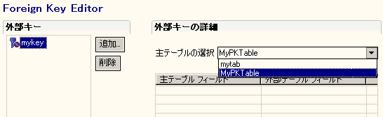 2 外部キー リスト内の目的の外部キーをクリックします。
