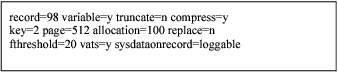 可変長部割り当てテーブル(VAT) | huge=<y|n> # vats=<y|n> | 適用外 | 可変長レコードのあるファイルのみに適用できます。 |