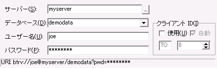 クライアント ID | このログインまたはログアウトを特定のクライアント ID にのみ適用する場合は、[使用]をクリックして範囲を指定します。それ以外の場合は、そのままにしておきます。『Btrieve API Guide』の クライアント ID を参照してください。 |