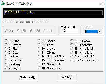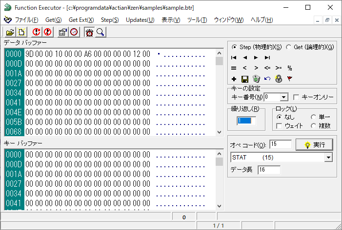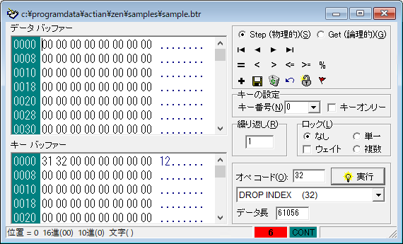 オペレーション リスト | Btrieve オペレーションとそのコードをリストします。デフォルトは Open(0)です。実行するオペレーションの頭文字を入力すれば、リスト内ですぐに移動ができます。 | |