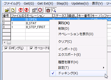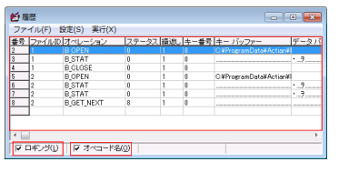 オペ コード名 | オペレーション列に表示するオペレーション コード名(B_OPEN など)とオペレーション コード番号(B_OPEN に対する 0)を切り替えます。 |